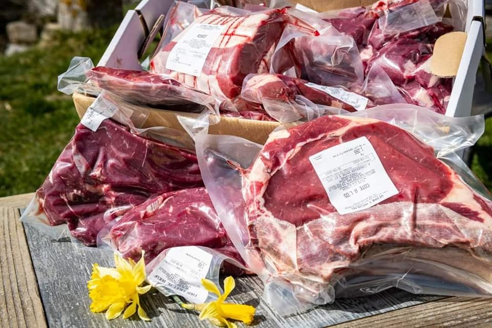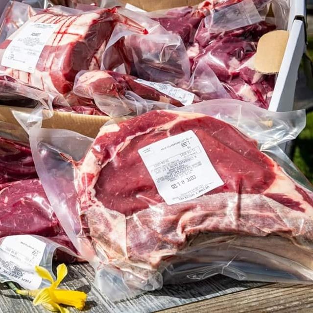 vente de colis de viande bovine bio en directe de notre exploitation, par colis de 5 kg ou 10 kg.
