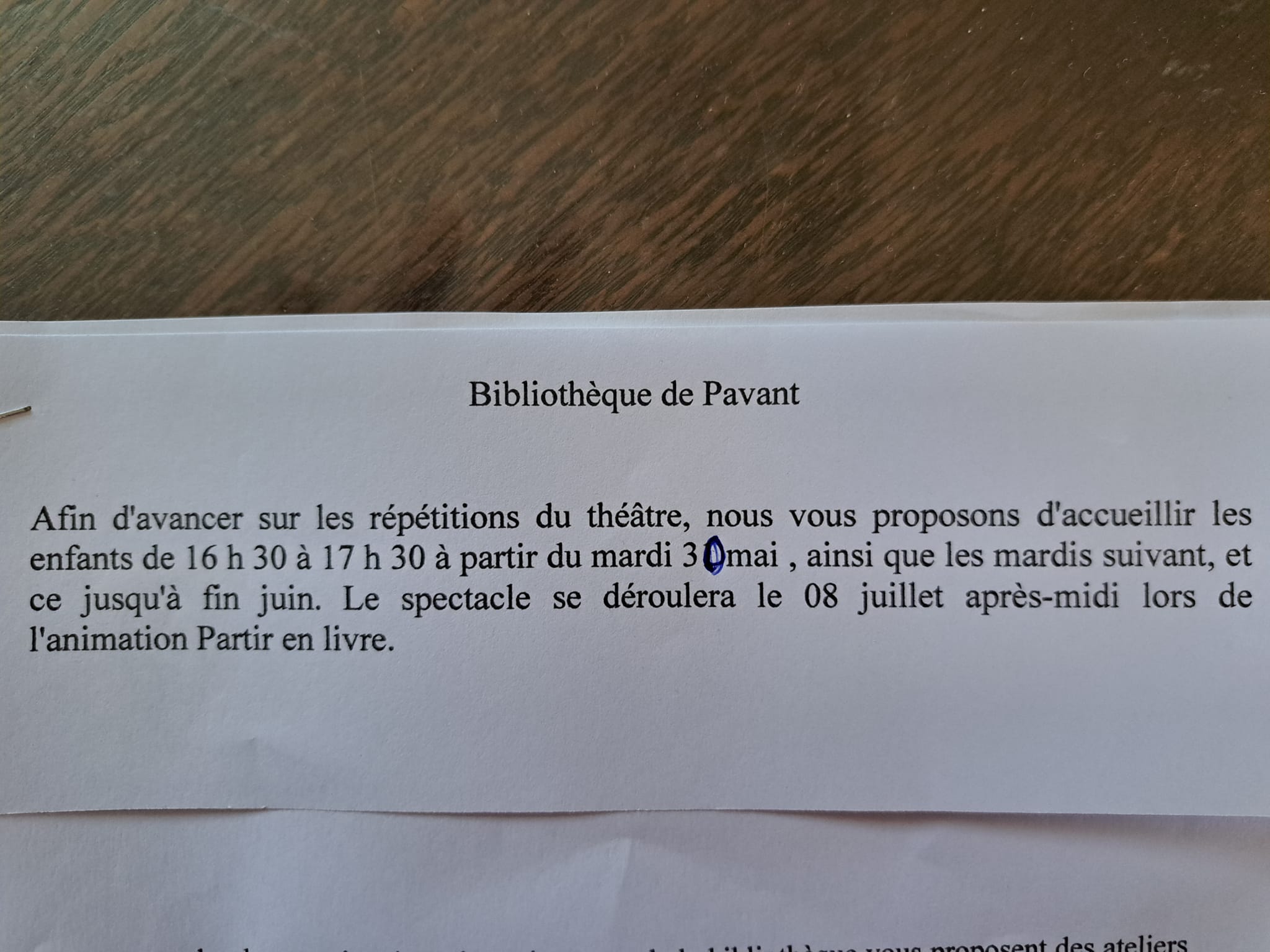 le jeudi : réservé pour l’école de Pavant