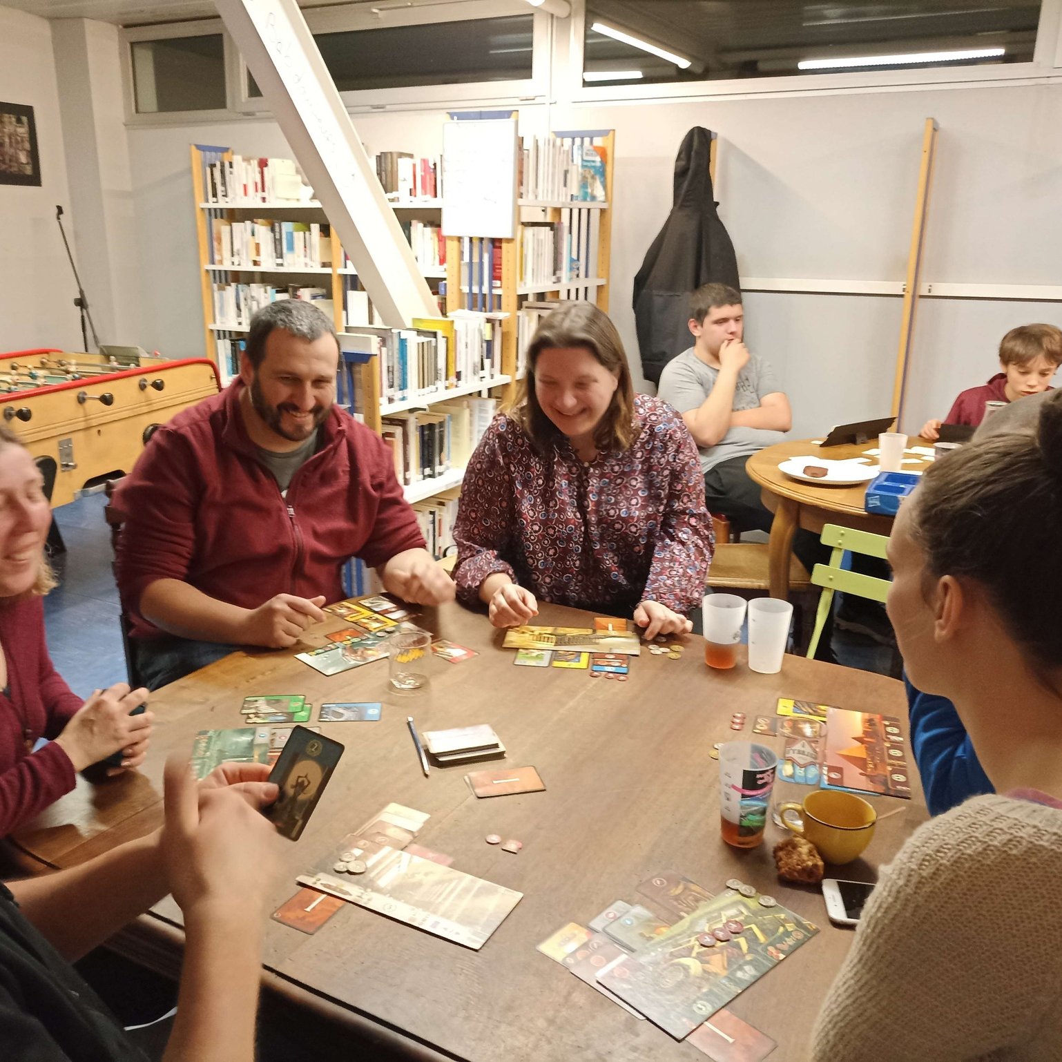 une médiathèque pleine de livres à emprunter et de jeux à partager sur place.
